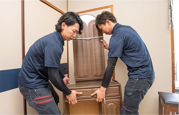 重量級の家財の搬出を不慣れな方が行うと、壁や床などを傷つけることがあります。また重さにより腰を痛めたり、落としてケガしたりするケースもあるため、ご自身で搬出するのはかなり危険です。分解して運び出すにしても、特殊な工具が必要で手間がかかることも。大型家具などの搬出・分解はプロに任せるのがおすすめです。