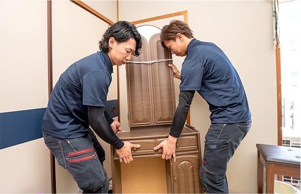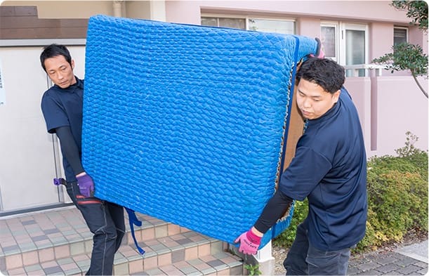 プロのスタッフが対応搬出にテクニックがいる大きな家財(家具・家電)から小さくて軽いお荷物まで、ベテランスタッフが大切に搬出・搬入いたします。家財、お荷物は傷などをつけないよう大切に梱包し、細心の注意を払います。
