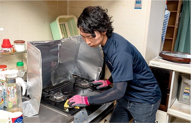 また、もうひとつの特長が、引越しのプロでありながら清掃のプロでもあるということです。通常、家財搬出後の清掃作業はお客様で対応となるのが常ですが、水回り、細かいところまでスタッフが清掃いたします。