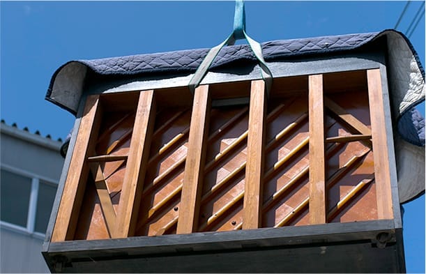 そんな場合でも、関西エコリサイクルならベランダや窓から吊り下げ搬出が可能。プロの技術・ノウハウでご自宅や家財を傷つけずに安全第一で丁寧に運び出します。 -