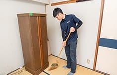不用品回収の後は掃除機を使いお部屋の清掃を行います。その後、ご依頼者様に最終確認をしていただき作業完了となります。