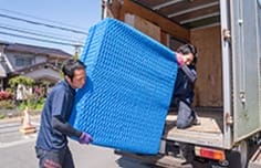 不用品の搬出時には、建物やお部屋が傷つかないようにしっかりと養生しております。大型家具などは丁寧に梱包して運び出します。