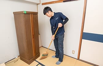 不用品回収の後は掃除機を使いお部屋の清掃を行います。その後、ご依頼者様に最終確認をしていただき作業完了となります。