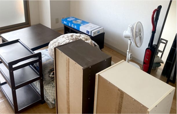 不用品の搬出時には、建物やお部屋が傷つかないようにしっかりと養生しております。大型家具などは丁寧に梱包して運び出します。